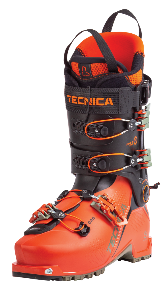 The Zero G Pro Tour uses co-injected bands of grilamid in the front and carbon in the back of the grilamid shell. These bands, dubbed the Power Frame, connect the ankle pivot point to the T-Hike walk-mode’s three connection points: one on the lower shell and two on the upper cuff for a more progressive flex. “Grilamid shell with carbon fiber to keep it stiff and light. The forward lean, up to 16 degrees, is significant, and, with its 130 flex, the boot naturally keeps you in a dynamic skiing position,” said a freeride coach. Our former racer added, “This boot has pushed what a 1,250-gram boot can do and has found a weight so low that if they lighten it any more it wouldn’t have the damping ability for a boot in its class.”