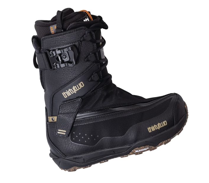 An overhaul of the MTB, the new MTB Lite has a ski-boot-style, buckle-released walk mode that gives more rearward range of motion. A Wasatch vert crusher exclaimed, “It makes for fast, smooth, easy transitions,” adding it’s ideal for softbooters who want hardboot features without the plastic shell. “Huge lugs, a stiff shank and a solidly reinforced toe make these perfect for bootpacking,” commented a Teton tester of the MTB Lite’s crampon-compatible soles. “Kicking steps in these is a dream, and walking on icy, alpine garbage feels secure.” On the downhill, testers appreciated a slimmer overall profile than the MTB thanks to an engineered outsole. “They’re stiff but supple,” commented that Teton tester, judging the flex best for big mountain charging. He also loved the removable, stiffening inserts along the calf. One tester found the fit was roomier than other ThirtyTwo boots. “I could’ve sized down at least a half size, maybe a full one,” he reported. He also relayed that the liner lacing system loosens throughout big days.