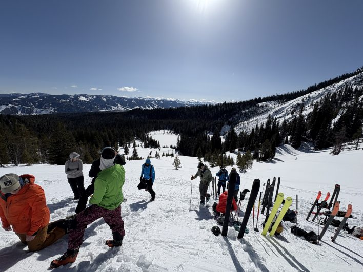 Before starting, it’s important to huddle in the parking lot and have a brief discussion about the day’s goals, snow stability, key decision points, and individual risk tolerance. This ensures that everyone is on the same page and that group norms are established.