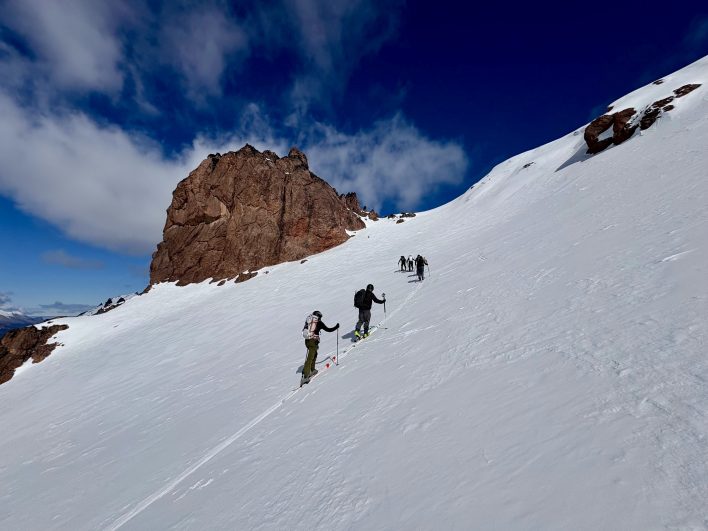 It helps if your lead skier are among the more experienced members of your group, not necessarily the fittest. It’s also wise to have an experienced member at the tail. Trouble always seems to float to the back of a group, and an experienced tail can help a newer tourer fix an equipment problem or keep an eye on a group member who is lagging.