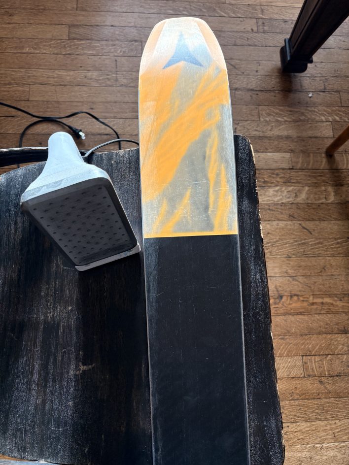 Then wax, and leave it on. Apply a glide wax heavily with a ski-specific iron, covering the full base out to the edges. This is storage wax; it isn’t meant to be scraped before next season. It seals out moisture and keeps edges rust-free all summer. That said, if you’re anything like me and tend to forget about storage wax when the first snow falls in November, there’s no harm in doing a full wax, scrape and brush now.