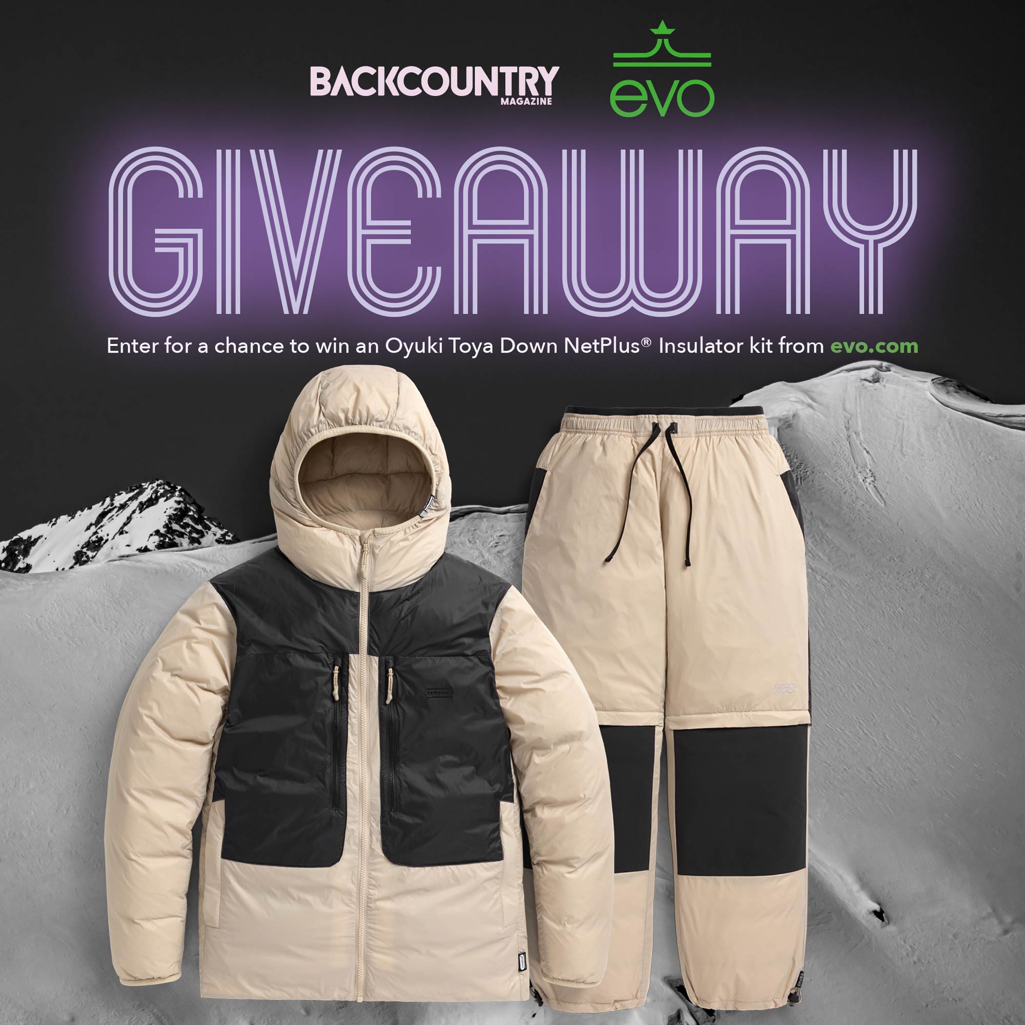 Enter the Backcountry Magazine Giveaway for a chance to win an Oyuki Toya Down NetPlus® Insulator kit from evo.com!